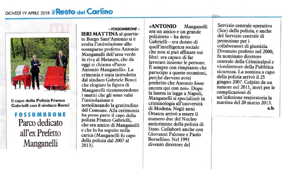 aprile 2018, con inizio alle ore 11,00, a Fossombrone nell’area pubblica tra via