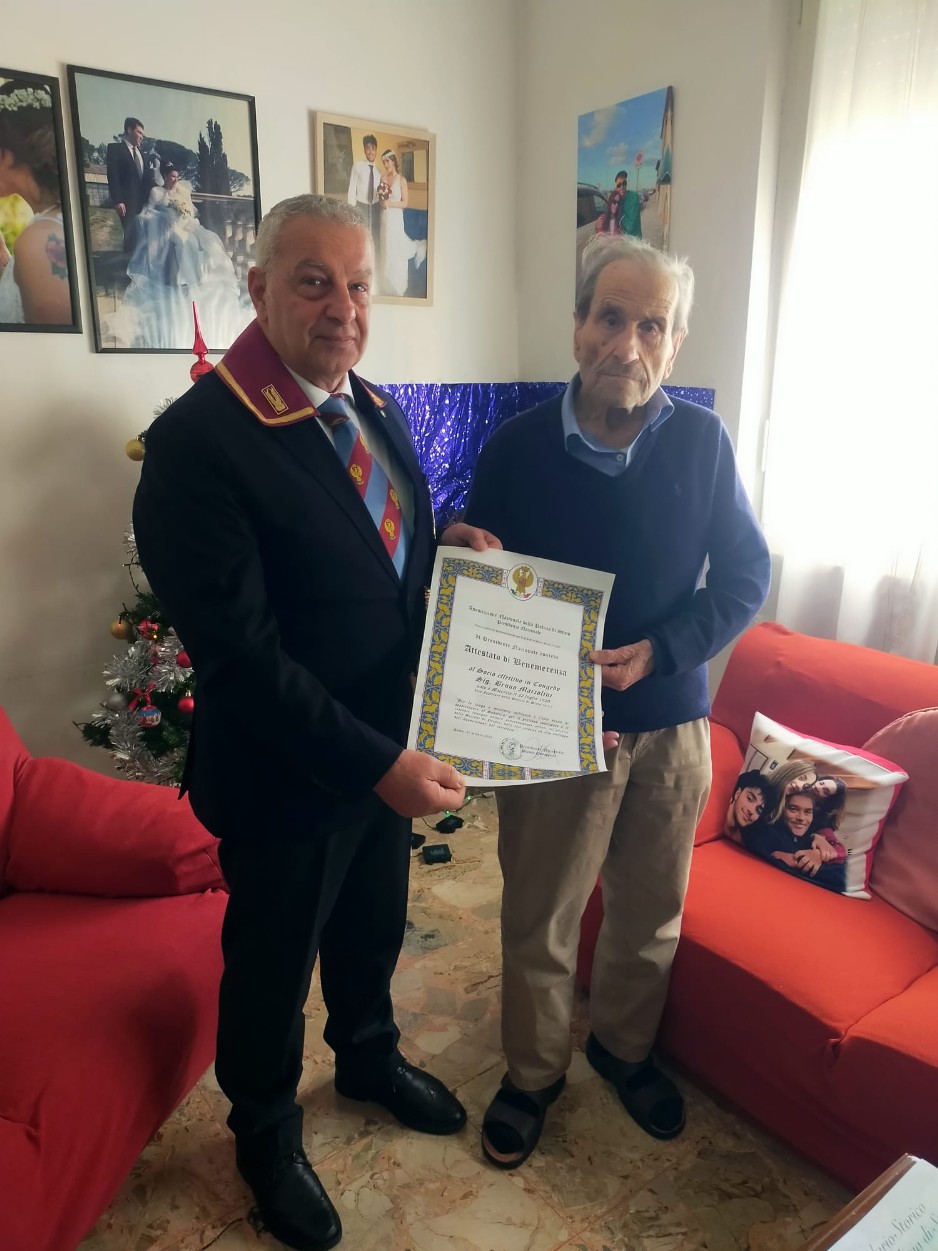 Nella mattinata odierna, in occasione della Vigilia Natalizia, il Presidente della Sezione ANPS di Pesaro Alfredo Marra, unitamente al Socio Tagliacarne Cristofaro, ha fatto visita al Socio Effettivo in Congedo, classe 1929, Bruno Marcolini per portare allo stesso gli auguri di Natale di tutti gli associati della Sezione ANPS di Pesaro e per consegnargli l'Attestato di Benemerenza rilasciato dal Presidente Nazionale ANPS "Per la lunga e preziosa militanza protratta negli anni in riconoscenza dell'attività svolta e dell’alto senso di appartenenza al Sodalizio ed ai suoi valori, grati per il suo prezioso contributo alla Sezione di Pesaro e del meritorio impegno sempre generosamente offerto volto alla crescita ed allo sviluppo dell’Associazione nel territorio".