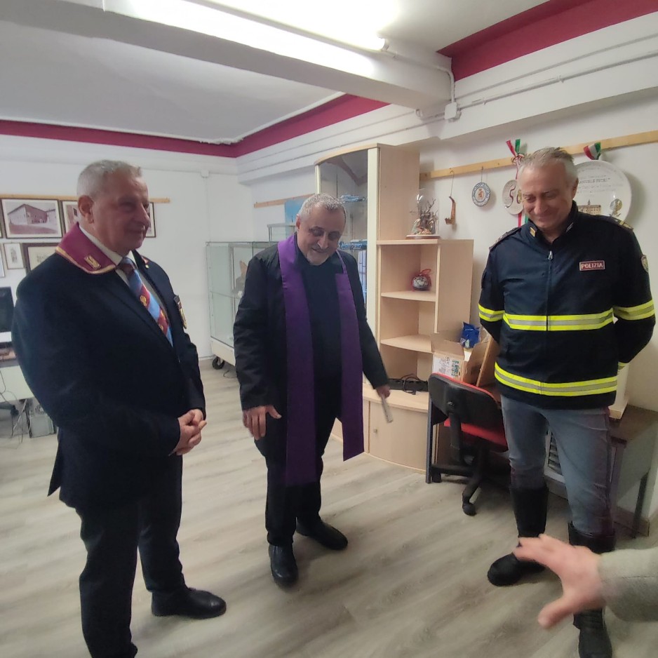 Oggi 25 marzo, presso la Delegazione ANPS di Urbino ed in occasione del Precetto Pasquale, il Cappellano della Polizia di Stato Don Walter ha proceduto a impartire la benedizione dei locali della sede. La cerimonia e' stata anche occasione, per i soci e gli iscritti intervenuti, di scambiarsi gli auguri per le imminenti festività della Santa Pasqua e di poter anche consegnare la tessera di appartenenza all'ANPS al neo Socio Effettivo in congedo Gianluca Bertulli, al quale e' stato rivolto un particolare augurio di benvenuto nella famiglia ANPS. Presidente Marra